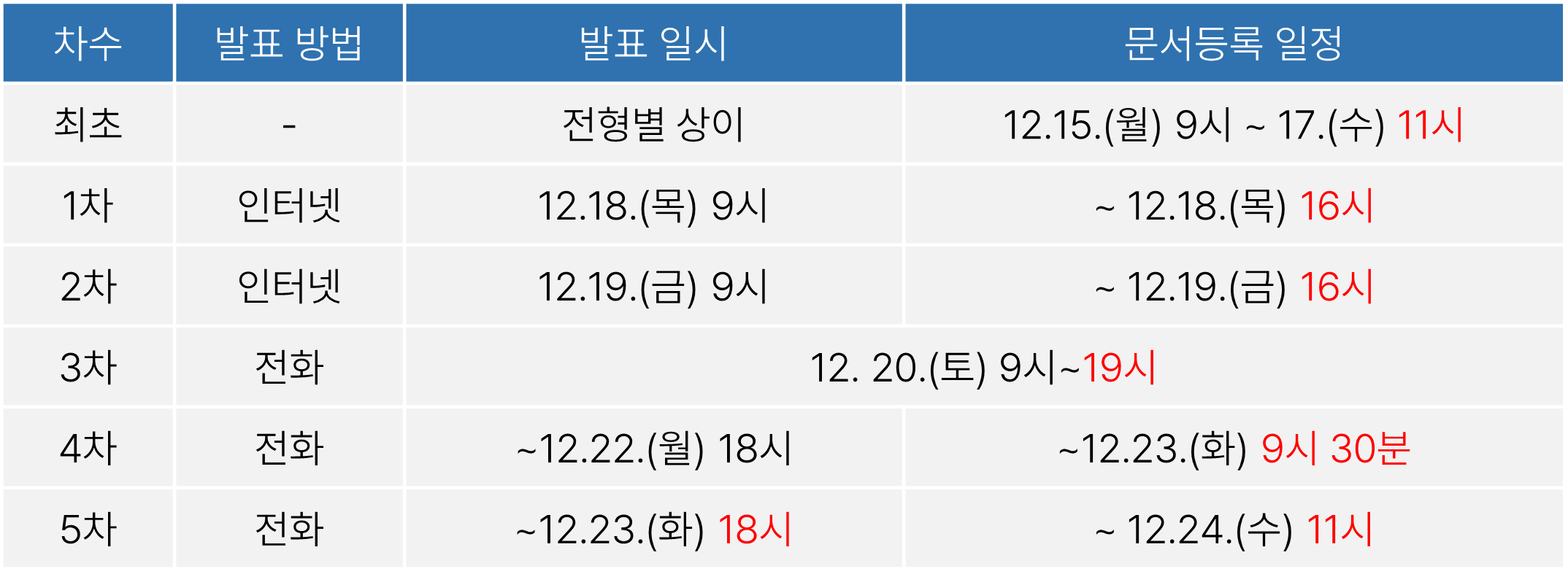 1. 충원합격자 발표 기간[2025.12.18.(목)~23.(화) 18시]에는 반드시 입학처 홈페이지(https://admission.cau.ac.kr)에서 충원합격 여부를 확인하시기 바랍니다.